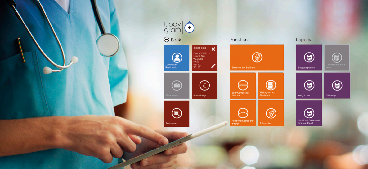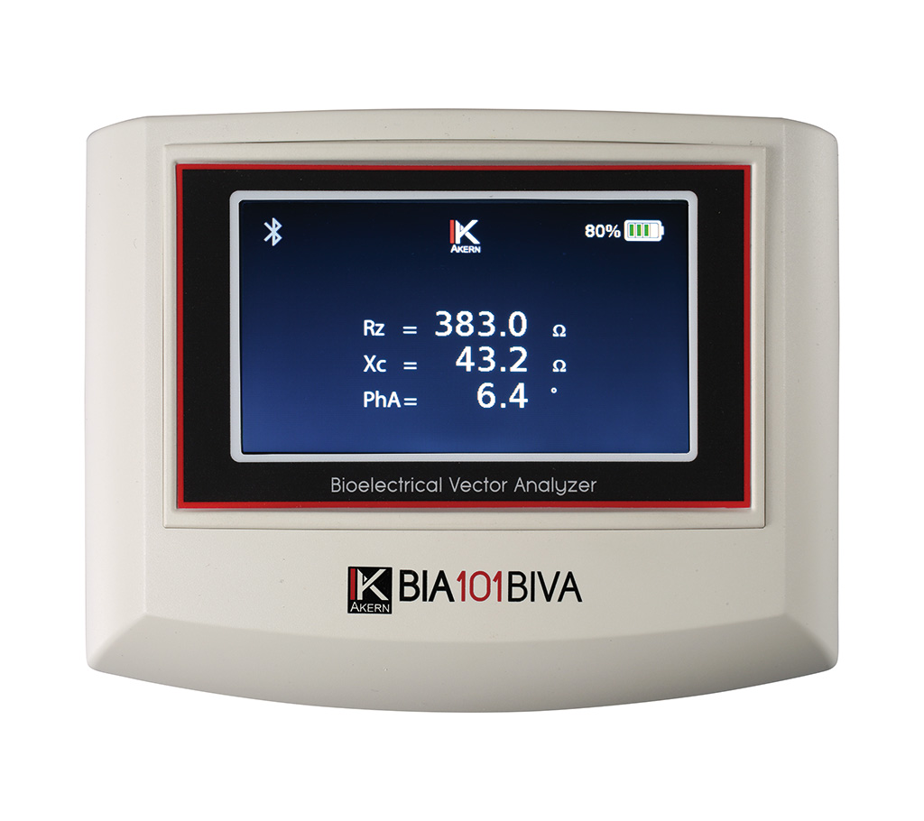 L’analisi vettoriale di impedenza tramite nomogramma Biavector (BIVA Bioeletrical Impedance Vector Analysis) offre uno schema interpretativo immediato circa lo stato di idrico e nutrizionale del soggetto. Numerosi studi hanno dimostrato che non esistono metodiche in grado di valutare in maniera precisa i vari componenti corporei  (% di Massa Grassa, % di Massa Magra, ecc…). le misure bioelettriche individuali rilevate dal sensore Akern vengono elaborate da un software specifico (Bodygram Plus) che non si limita a fornire le stime dei compartimenti corporei: grazie al grafico esclusivo Biavector, permette di valutare direttamente e senza errori lo stato di idratazione, la qualità e quantità di cellule all’interno dei tessuti.